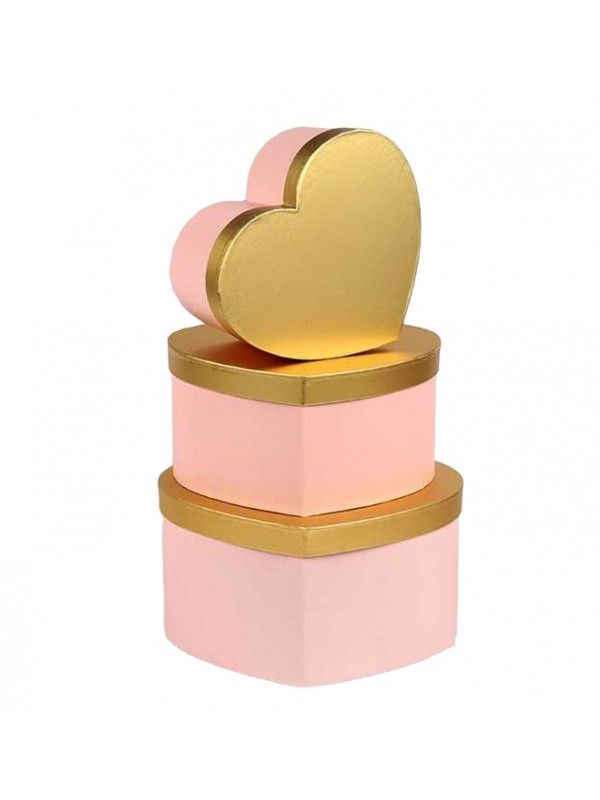 darčeková krabica v tvare srdca v ružovej farbe so zlatým holografickým vekom