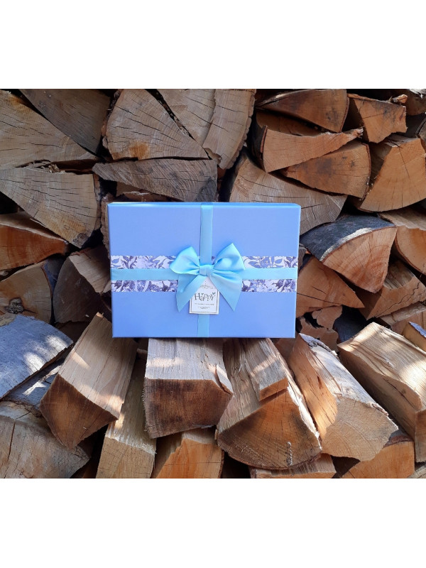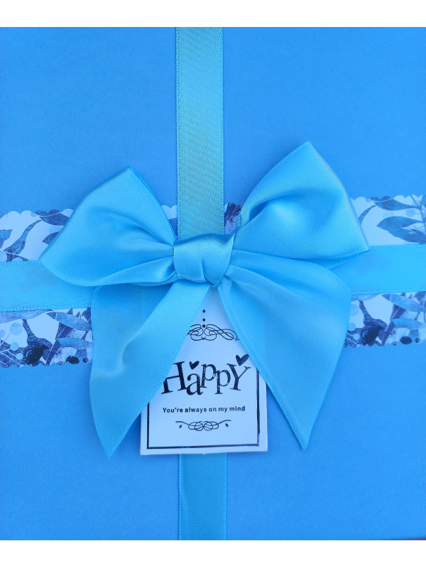 darčeková krabica v nebesky modrom prevedení so saténovou mašľou