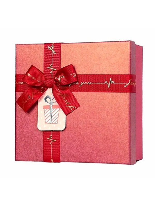 darčeková krabica v červenom prevedení so saténovou mašľou s nápisom Just for you (Len pre teba)